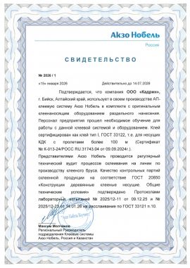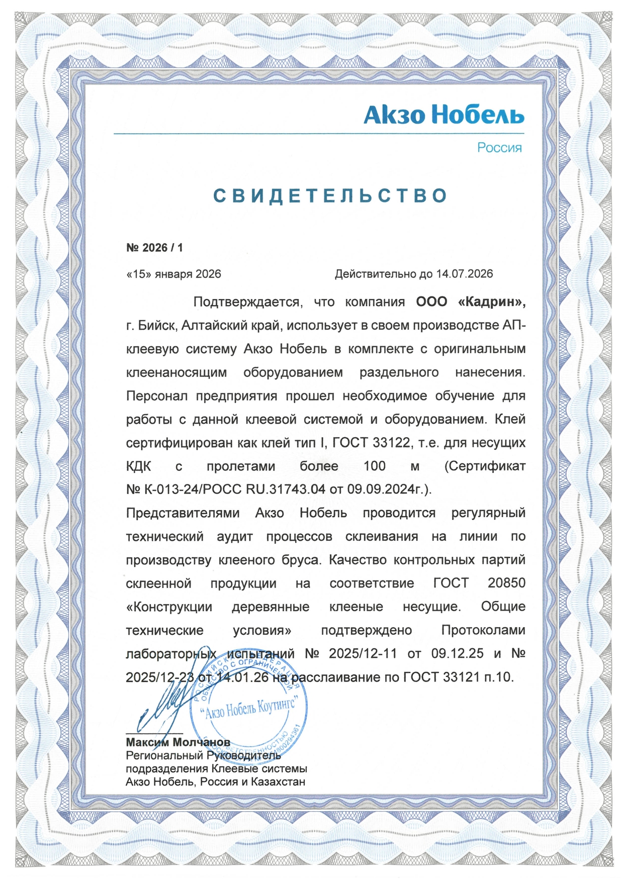 Компания «Кадрин» начала заниматься производством оконного клееного бруса. Также приобрели цех с оборудованием и приступили к производству строительного клееного бруса. Выход на московский рынок