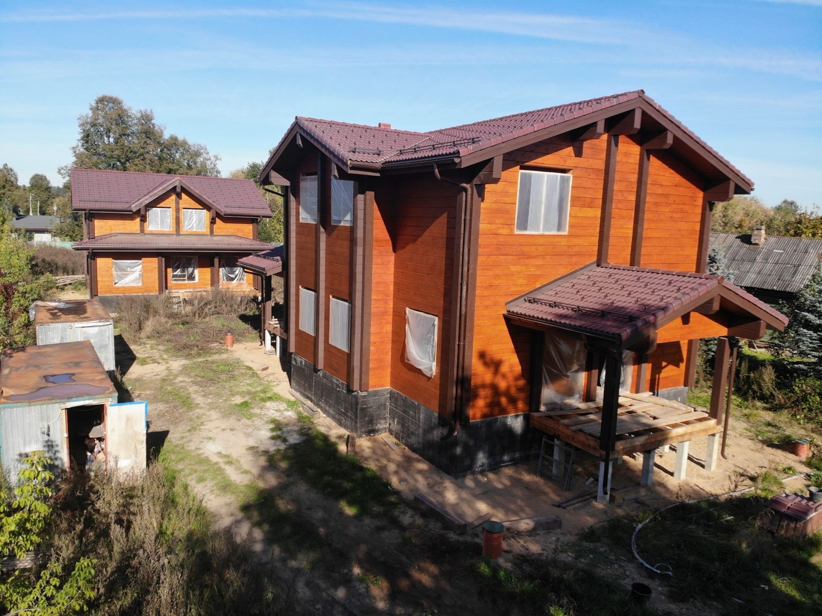 Наша бригада завершила внешнее окрашивание дома и бани. Это индивидуальный проект нашего заказчика. Площадь дома составляет 256,38 квадратных метров, а площадь бани 158 квадратных метров.