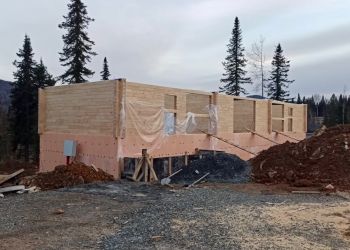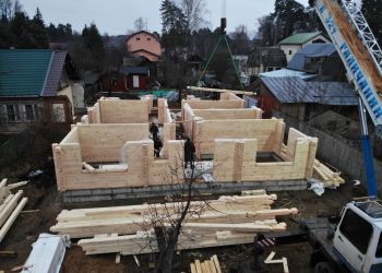 Наша бригада приступила к сборке сруба дома. Дом строится из клееного бруса собственного производства из сосны сечением 205х185 мм. Это индивидуальный проект нашего заказчика. Общая площадь составляет 395,96 квадратных метров.