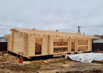 Мы завершили монтаж стропильной системы. Сейчас наша бригада приступает к монтажу кровельного пирога. В строительстве мы используем клееный брус собственного производства из сосны сечением 205х270(h) мм. Это полностью индивидуальный проект нашего заказчика. Площадь гаража составляет 99,67 м2.