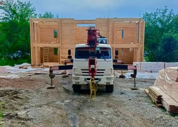 Наша бригада продолжает сборку сруба дома. В строительстве мы используем клееный брус собственного производства из сосны с сечением 205х185 мм. Это полностью индивидуальный проект нашего заказчика. Общая площадь дома составляет 211 квадратных метров.