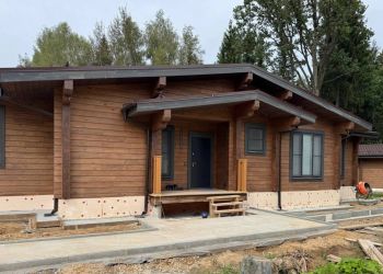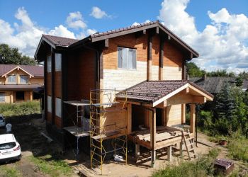 Наша бригада приступила к внешнему окрашиванию. Дом построен из клееного бруса собственного производства из кедра сечением 245х270 мм. Это индивидуальный проект нашего заказчика. Общая площадь дома составляет 256,38 квадратных метров.