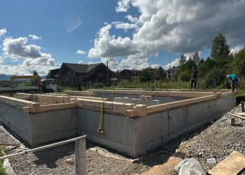 Завершили заливку фундамента. Это полностью индивидуальный проект нашего заказчика. Общая площадь двухэтажного дома составляет 231,23 квадратных метров.