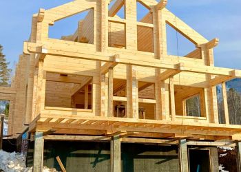 Наша бригада закончила сборку сруба дома. Сейчас мы приступаем к монтажу стропильной системы. В строительстве мы использовали клееный брус собственного производства из сосны с сечением 185х205 мм. Двухэтажный дом это — полностью индивидуальный проект нашего заказчика. Общая площадь составляет 184 квадратных метров.