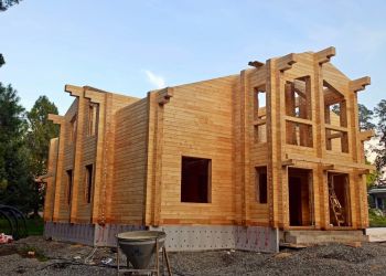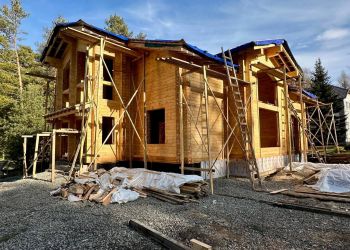 Площадь дома составляет 354 квадратных метра. Всего будет построено 3 здания из клееного бруса по индивидуальному проекту нашего заказчика. В строительстве мы используем клееный брус собственного производства из сосны с сечением 185х285 мм.