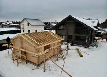 Мы вернулись на объект, где мы уже построили дом, теперь занимаемся строительством бани
