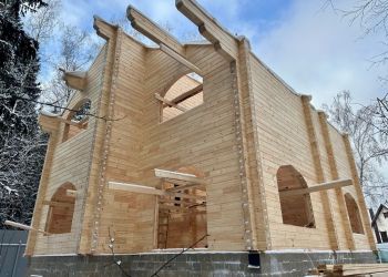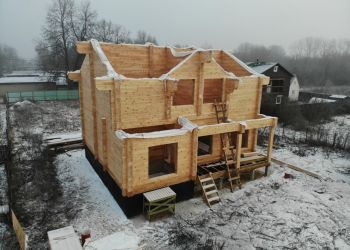 Завершили сборку сруба дома в Московской области