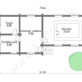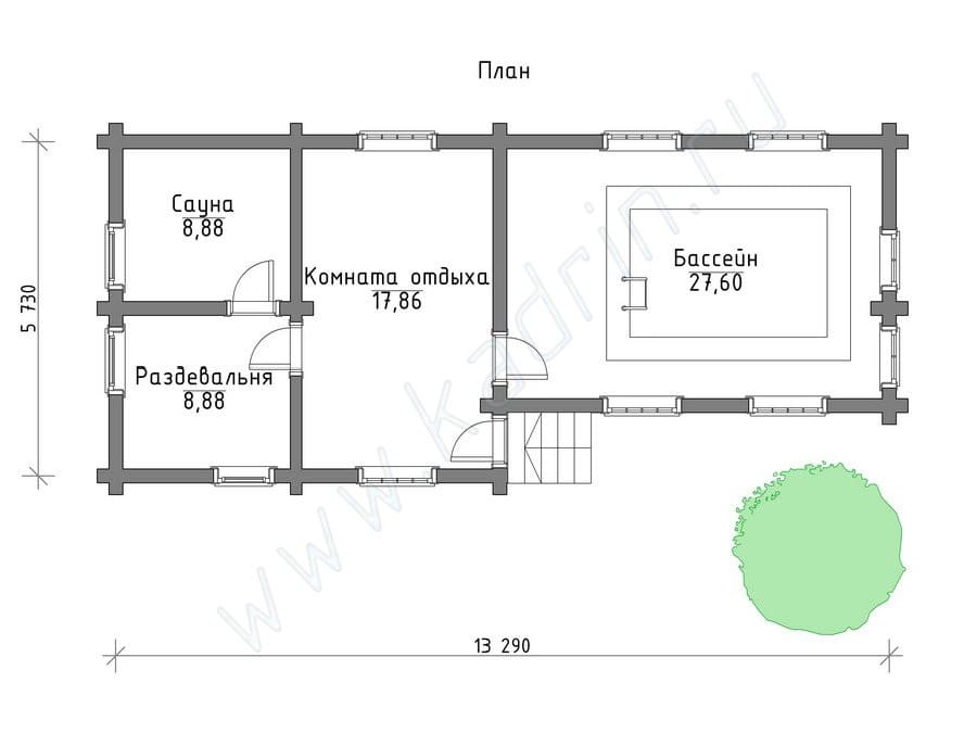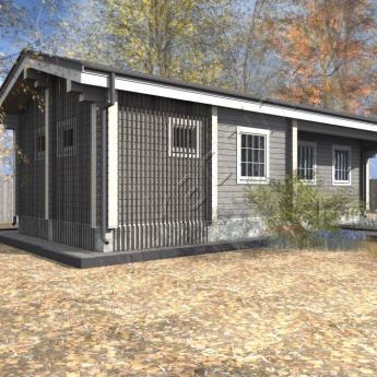Проект бани из клееного бруса, площадь которой составляет 63,22 кв. м.