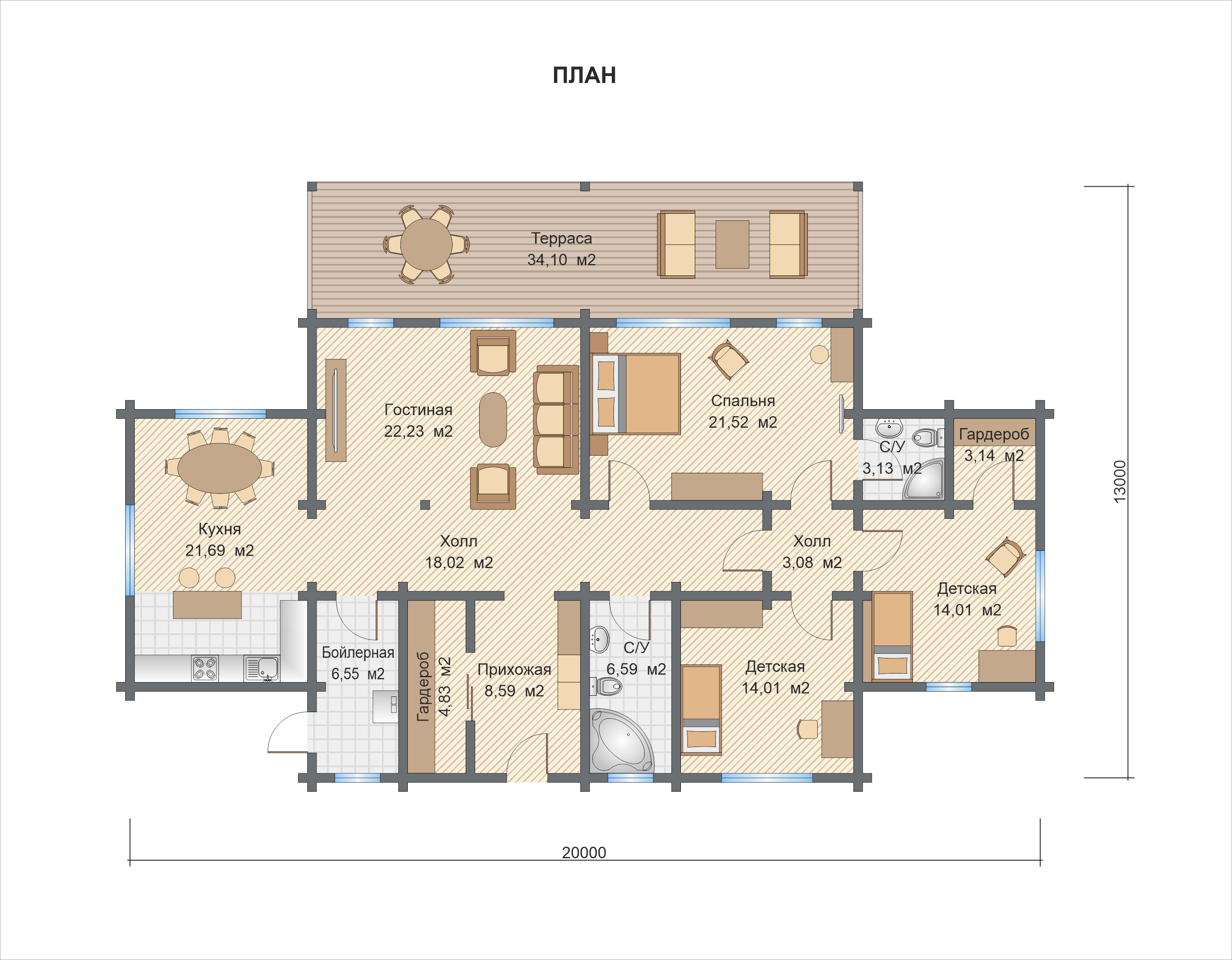 Также изюминкой данного проекта является большая терраса - 34,10 м2.