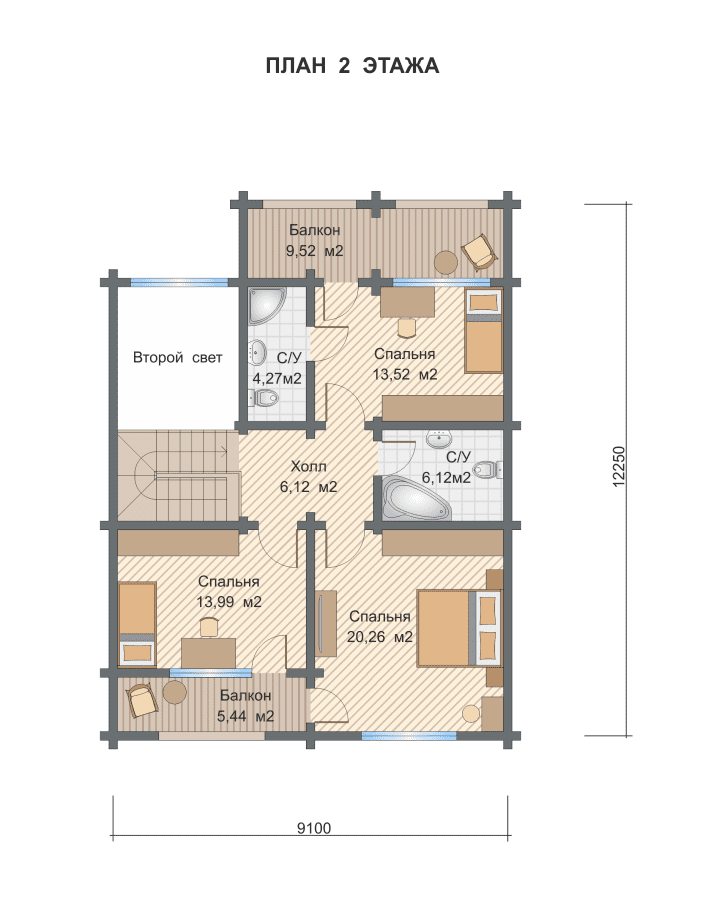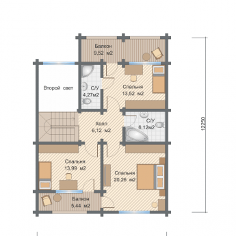 Также дом оборудован тремя санузлами и балконами в спальнях (балконом в каждой спальне).