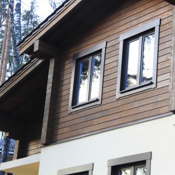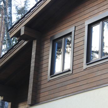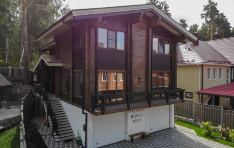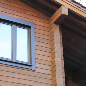 Для возведения второго этажа коттеджа используется клееный брус из лиственницы и кедра.