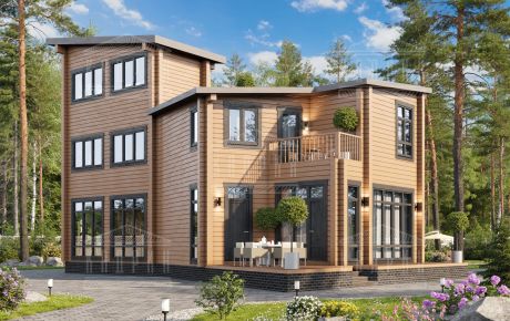 Двухэтажный коттедж, площадь которого составляет 87 кв. м.