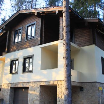 Выбрали типовой проект, но внесли небольшие изменения. Понравилось, что компания пошла навстречу и адаптировала проект под наши пожелания. Все работы выполнены в срок, претензий к качеству нет. Отдельное спасибо за помощь в планировке участка.