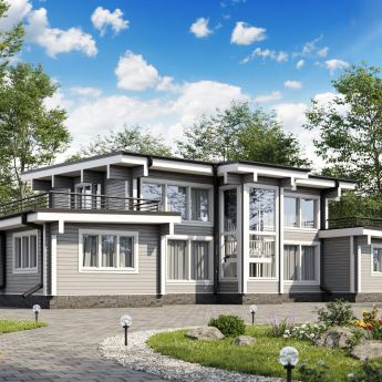 По проекту "Феникс" - двухэтажное здание, которое также оснащено двумя большими открытыми террасами (выход на которые происходит через спальни на втором этаже).