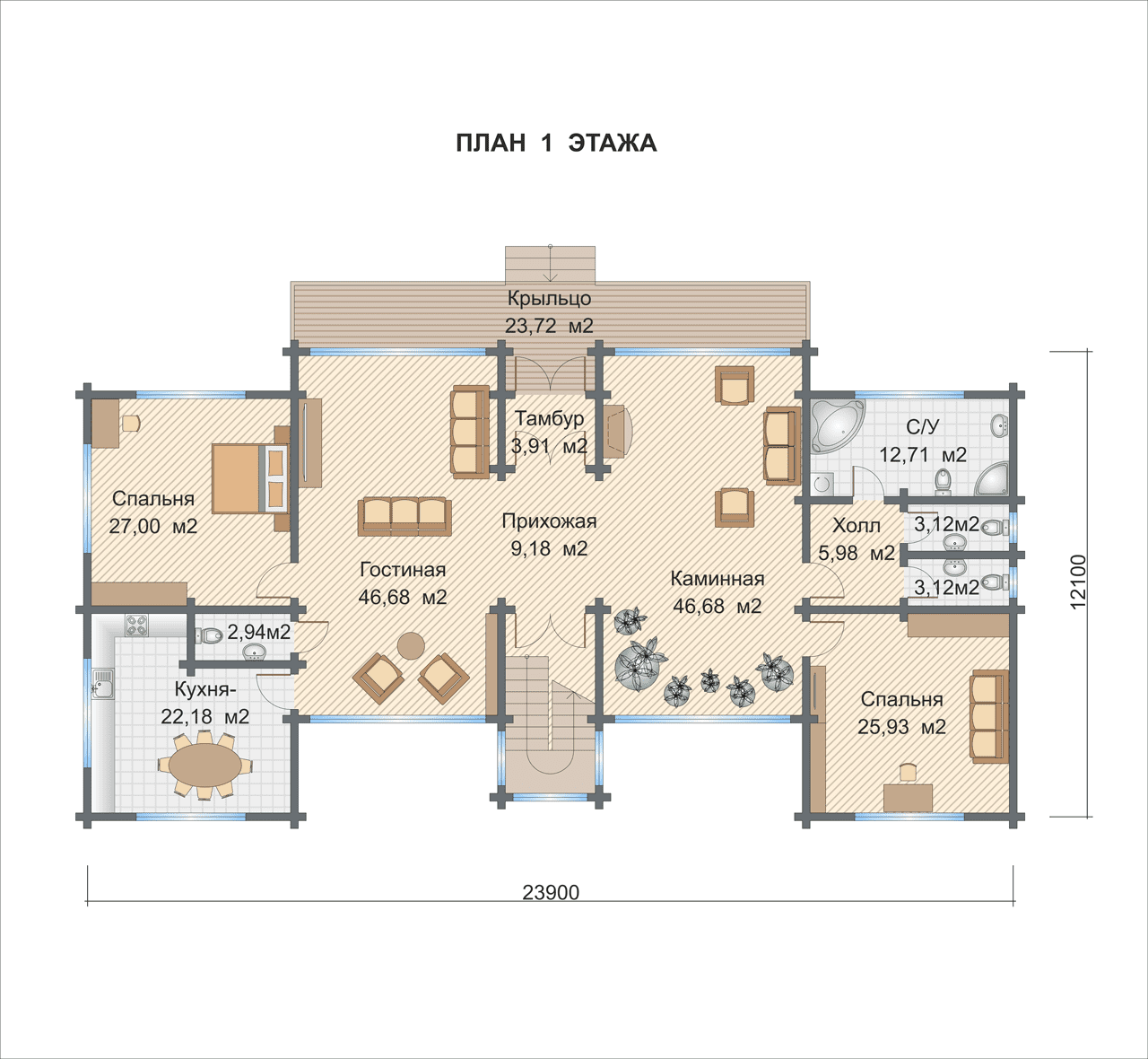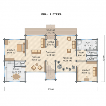 Полезная площадь проекта "Феникс" - 362,14 кв.м. Площадь крыльца составляет - 23,72 кв.м., площадь балкона - 20,64 кв.м.