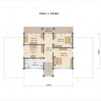 На первом этаже 2 спальни, на втором этаже 4 спальни.