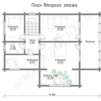 Также дом оборудован двумя санузлами и балконами в спальнях.