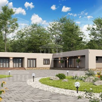 По проекту "Таланс" - одноэтажное здание, которое также оснащено двумя большими открытыми террасами. Площадь террас составляет - 60,67 кв.м.