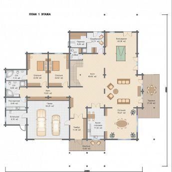 Полезная площадь проекта "Тренто" - 546 кв.м. Площадь крыльца составляет - 13,90 кв.м., площадь террасы - 27,49 кв.м., площадь балконов - 11,15 кв.м.