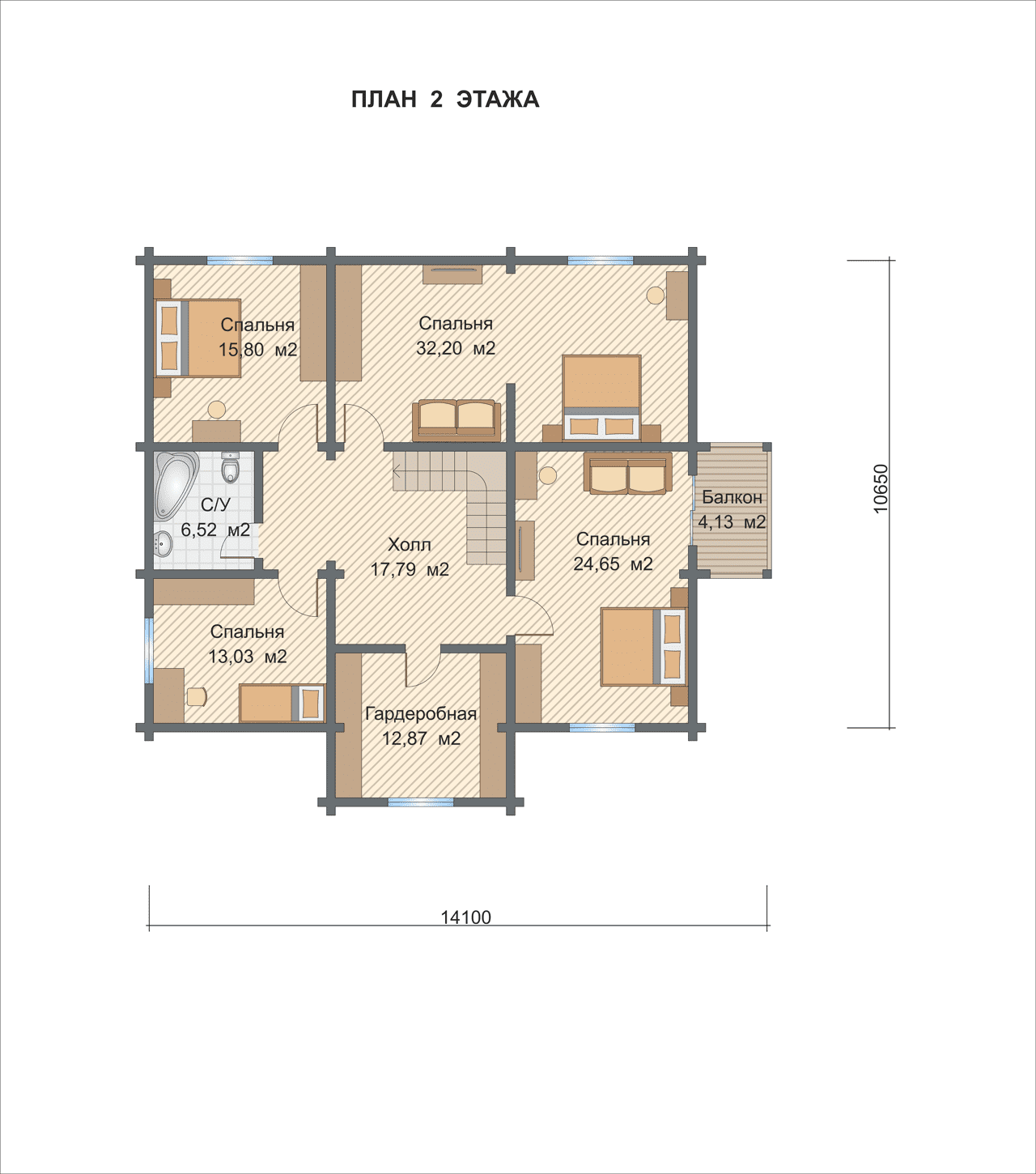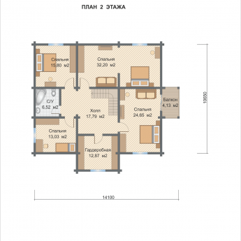 По проекту в доме есть 5 спален, 2 С/У.