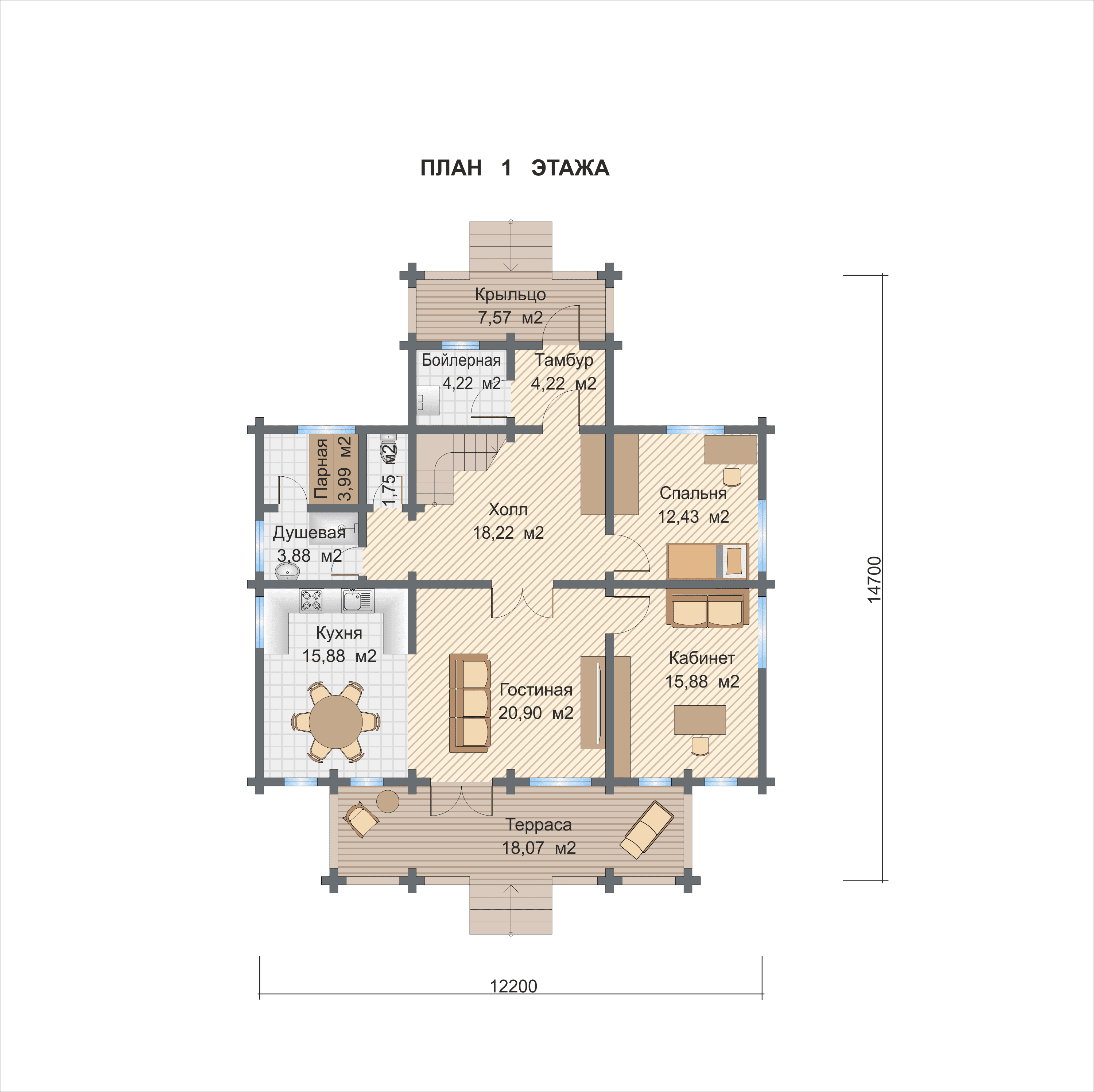 Базовые планировки Дом из клееного бруса Зерфаус 1