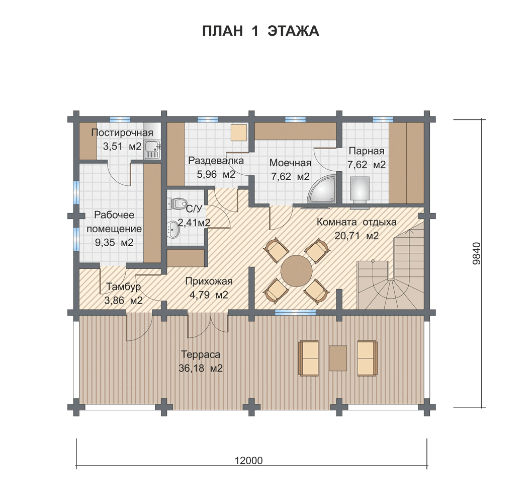 Базовые планировки Баня из клееного бруса Иннсбрук 1